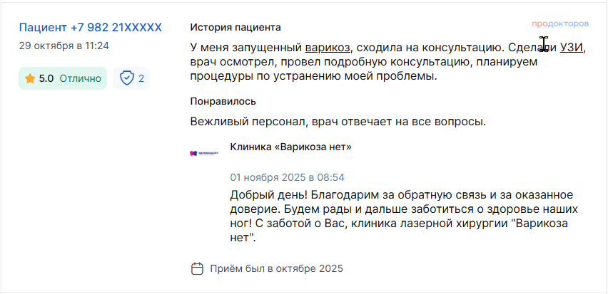 Прием флеболога + УЗИ вен всего за 5.000 1 190 рублей* до 20 ноября