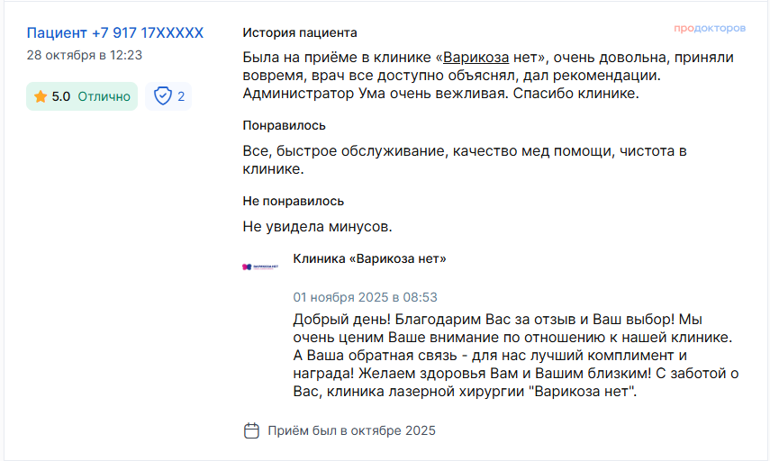 Устраняет варикоз через тонкий прокол под УЗ-контролем под местной анестезией.